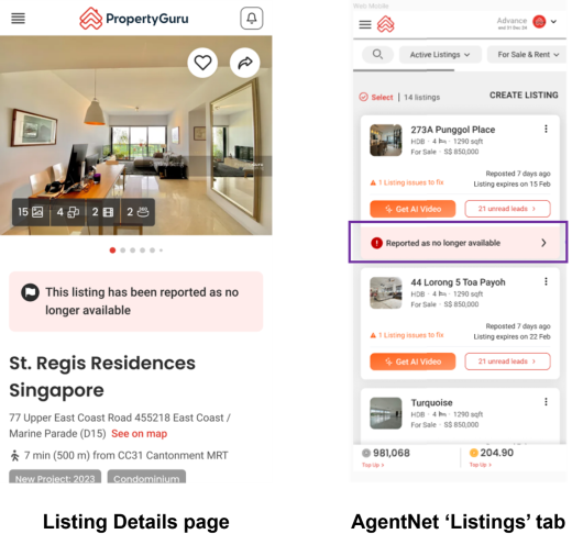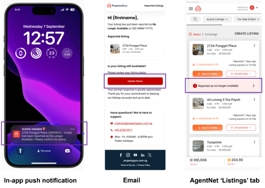 Effective from 3 April 2024, agents whose listings have been reported as no longer available will receive instant notifications, allowing you to take prompt actions to update your listings’ status.